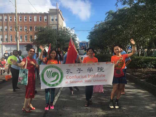 当地时间10月7日,萨凡纳州立大学孔子学院全体教师参加了萨凡纳州立大学一年一度的“大学校友日”庆祝游行活动。此次活动在萨凡纳市中心举行,上万名萨市群众聚集在市区道路两旁,同萨凡纳州立大学校友们一同庆祝这一盛大的活动。