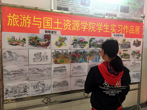 本次实习作品展展出了钢笔速写、马克笔手绘和电脑制图等80多幅作品,集中展示了人文地理与城乡规划专业学生赴皖南进行课程实习的教学成果,获得了参展师生们的高度评价。