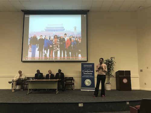 当地时间10月26日,美国萨凡纳州立大学孔子学院以“外国人讲中国故事”的方式在大学礼堂举行了一场主题为 “内视中国”的专题讨论会。孔子学院特邀今年三月赴华访问教育团的部分成员:萨凡纳州立大学副校长兼国际交流处处长伊曼纽尔(Dr. Emmanuel)、萨凡纳州立大学工程技术教育系助理教授基尚(Dr. Kisha)、萨凡纳州立大学人文艺术学院政治系教授贝赫鲁茲(Dr. Behrouz)、萨凡纳市公立中学联盟课程指导办公室主任马克·林斯基(Dr. Linsky)以及上海-美国进出口贸易有限公司顾问弗雷泽(William Frazier)作为此次讨论会的嘉宾。近百名萨凡纳州立大学在校师生前来参加了此次讨论。