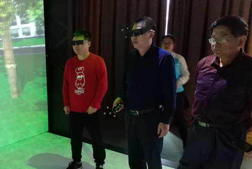 期间,梅教授一行参观考察了上海交通大学虚拟现实VR创新教育实验中心、上海工程技术大学数字媒体体验展示中心、上海曼恒虚拟现实VR交互体验馆,从虚拟现实技术进展到VR教育应用、历史建筑保护、新闻传播、文创产业,以及VR应用实验室的设计组成等多角度、全方位调研了新兴的虚拟现实技术对教育未来发展的变革力量和促进作用。