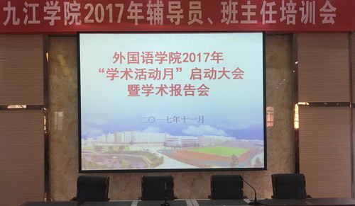 按照学校“学术活动月”的部署,11月1日下午,外国语学院在香远楼三楼报告厅举行“学术活动月”启动大会暨首场学术报告会。活动由外国语学院副院长柴克清主持,外国语学院院长韩琨、党委书记杨杰、党委副书记彭晓出席,全体教师参加了本次学术报告会。