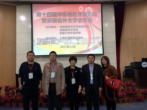11月3-5日,由华东地区外文学会协作组主办,安徽省外国文学学会、安徽大学外国语学院承办,上海外语教育出版社协办的第14届华东地区外语论坛在安徽大学胜利召开。来自浙江、江苏、安徽、江西、山东、福建和上海近400位外语界著名专家、会员高校的外语学院院长和教师代表相聚合肥,共享饕餮学术盛宴。我校外国语学院高度重视,院长韩琨带领教授周志高、副教授邓海波、王伟、章志红参加会议。