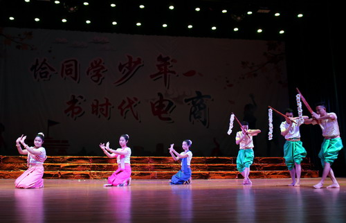 模特队的帅哥靓女们向大家展示了电商学子自信、多才的一面;歌曲串烧《夜空中最亮的星》、《谢谢侬》等则让大家在通俗歌曲联唱中去感受电商好声音的风采;留学生代表带来的舞蹈更是让观众领略了柬埔寨人民独有的风土人情;经典诵读《木兰辞》,体现了电商学子在国学素养教育下形成的“学经典、诵经典、背经典”的美好;阮青、顾燕燕等爵士队的同学们为大家带来了跃动的舞蹈《Magic》;A1431班全体同学带来的《你好明天》用自己的方式表达对美好大学生活的回忆,也以班级的名义祝福母校,祝福电商学院。