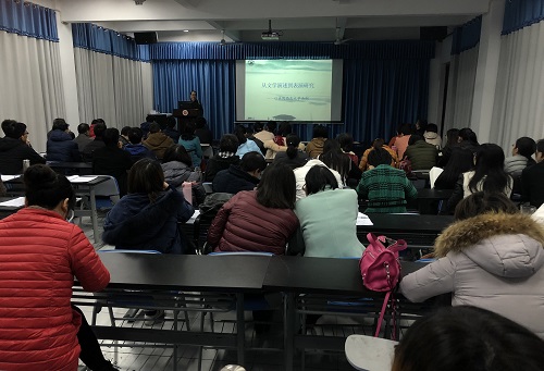 陈建军博士赴美国西北大学留学归来,是文传学院首位获得国家公派留学项目的青年博士教师。其从美国西北大学表演研究的转向、表演特色、学生培养等具体方面,向大家介绍了其赴美期间的学习成果。陈建军博士在文学表演上的学术思考及成果受到了学术界广泛关注。