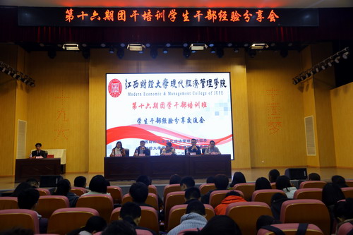 在江西财经大学现代经济管理学院学生干部经验分享会上,高铭同学受邀针对党的十九大报告内容做讲解。他以当代青年学生的历史使命与担当为主线,讲解了关于十九大的相关内容,并且通过举例自身的实习经历,告诫学生干部们提高自身政治意识的重要性。