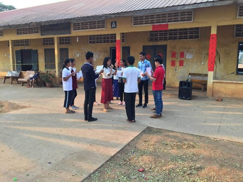 本次春节活动以文艺表演为主,同时穿插有趣的汉语课堂游戏。活动正式开始前,柏威夏汉语中心师生一起贴春联,贴福字,活动现场充满着浓浓的年味。
