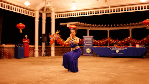 庆祝活动首先由孔子学院外方院长佩吉·布拉德(Peggy Blood)致欢迎辞,向到场的师生、民众表示欢迎和感谢。中方院长罗其娟向大家详细介绍了中国春节的传统民俗及十二生肖的故事。开场舞是由孔子学院老师们表演的手绢舞《好日子》,随后的节目更是一个比一个精彩:中国传统乐器葫芦丝独奏《月光下的凤尾竹》清新优美,太极功夫扇《中国功夫》柔中带刚,招招令人目不转睛,拍手叫好,中国传统戏曲《黄梅调》韵味十足,一曲《最炫民族风》更是让现场观众随着旋律一起舞动,好不热闹,独舞《侗乡之夜》优美动人的舞姿与灵动欢快的韵律尽显中国西南少数民族浓郁的风情与中国舞蹈的惟妙惟肖,赢得了现场观众的阵阵掌声和欢呼声。