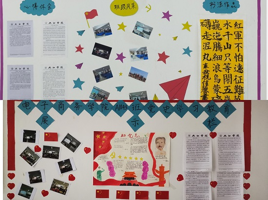 百年大党风华正茂,学思悟践正当其时。为在班级深入开展党史学习教育,激发广大学生更深入了解共产党的伟大历程,传承红色基因、培养爱国情怀,电子商务学院广泛开展党史学习教育系列活动,不断创新形式,推动党史学习教育融入教室、深入人心。