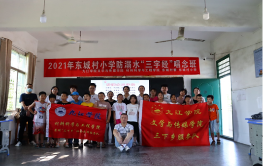 6月23日下午,文传学院三下乡服务队与材料学院暑期三下乡社会实践服务队赴九江市濂溪区莲花镇东城小学,开展了以防灾减灾防溺水为主题的知识宣讲教育讲座。服务队队员们宣讲了有关防灾减灾防溺水的基础知识,组织防溺水“三字经”唱念班,让东城小学的孩子们了解了火灾、溺水等常见危险发生时的应对方法。