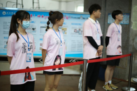 体育学院A2011班徐江南同学也在本次迎新的现场进行志愿服务,他主要负责接引新生报到,并带到宿舍。为了让迎新工作进行得更加顺利一些,他在前期做了较多的准备工作,不过,由于是第一次带新生,他还是感到不够熟练,很多事都需要自己不断地摸索探寻,后来,慢慢地熟练了,就感觉很有成就感了。“可能这就是所谓的‘赠人玫瑰,手有余香’吧!”对于学弟学妹的寄语,他很认真,仔细想了很久,终于想到了要说的话:“愿你既有敢于试错的勇气,又有认真踏实的努力!希望大家可以在接下来即将开始的军训中好好努力,并能在九江学院度过一个开心快乐而又充实的大学生活!”