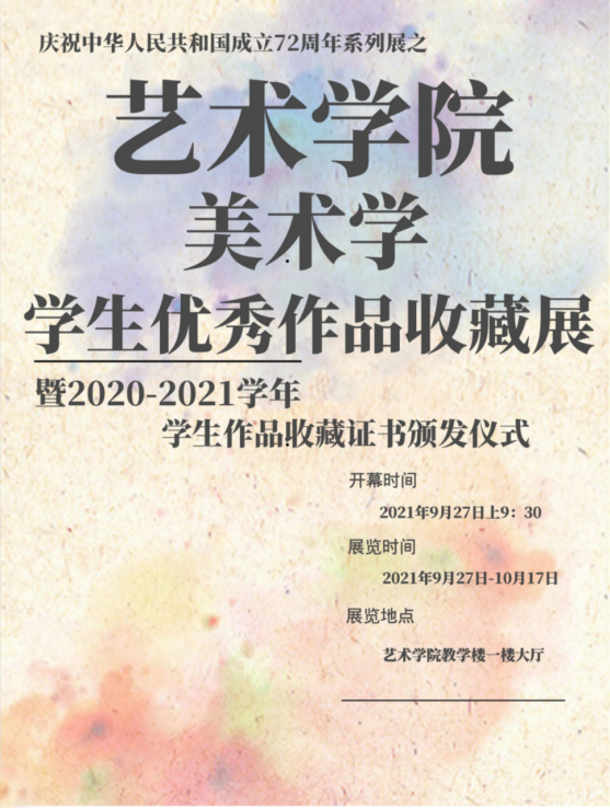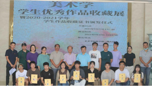9月27日上午,艺术学院在该院教学楼一楼大厅举办“艺术学院美术学学生优秀作品收藏展暨2020-2021学年学生作品收藏证书颁发仪式”活动。据了解,此次优秀作品收藏展举办时间为9月27日—10月17日。