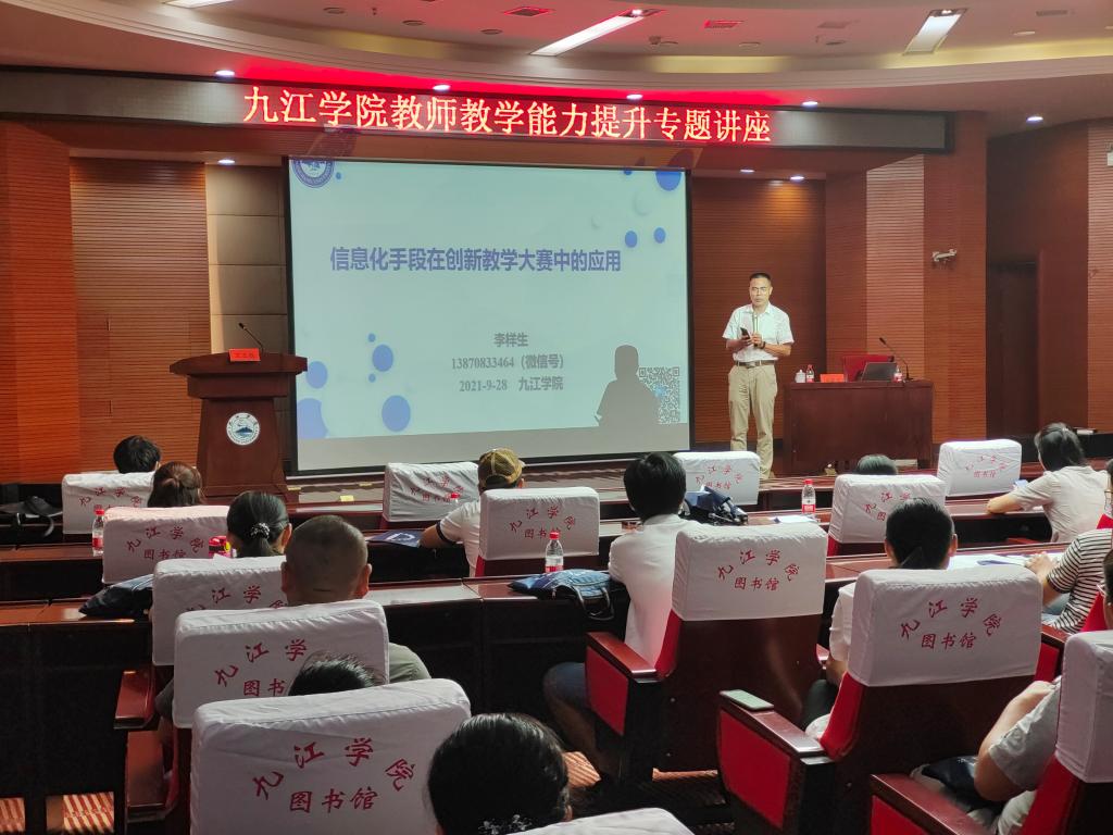 南昌大学李样生教授以《信息化教学手段在教学竞赛中的应用》为题,为教师介绍了各种信息化技术在课堂教学中的应用技巧,并结合自身参赛经验,深入浅出地解读了教师教学创新大赛和青年教师教学竞赛的政策,分享了备赛规范及勇于创新等方面内容,为我校信息化教学建设及教师教学竞赛提供指导帮助。