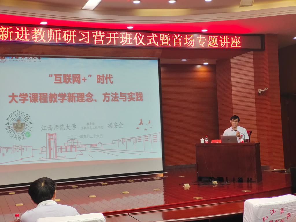 江西师范大学揭安全教授以《“互联网+”时代课程教学新理念、方法与实践》为题,从新时代党和国家对高等教育新要求为出发点,介绍了基于“互联网+”环境下,大学课程教学的新理论,新方法,包括线上线下混合式教学设计,课堂互动式、启发式、研究型教学方法,教学资源开发与应用,课程思政与专业课程教学有机融合等内容,为新时代教师及时更新教育理念,开阔教学思路,提升教育方法和教学创新能力指明方向。