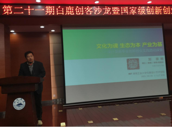 为贯彻落实国家和省市双创周活动要求,10月20日,第二十一期白鹿创客沙龙暨国家级创新创业大赛培训会在我校逸夫图书馆报告厅举行。中国国际“互联网+”大学生创新创业大赛优秀创新创业导师、湖南工业大学包装设计艺术学院副院长刘宗明教授来校为我校师生作交流指导。副校长陈春生出席培训会并致辞。
