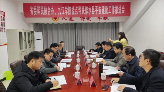 省军民融合办的领导同志也就本单位对接帮扶工作作了介绍和强调;修水县委政法委负责人在座谈会上就对接需求项目内容作了进一步说明;学校帮扶小组和省委军民融合办帮扶小组相关负责人作了表态性发言。