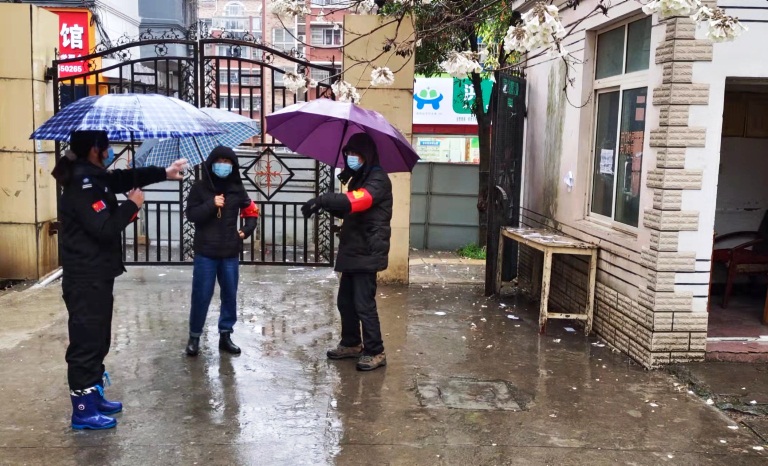 经过“岗前培训”,从3月19日开始,每天会有2位退休同志上岗值守。他们严格落实校门管控要求,对持有临时通行证的校区住户扫码测温放行,其他人员不得通行。连日来九江的阴雨天气,使得清晨的气温不到10℃,两个小时的户外值守对于老同志来说其实并不轻松,他们用热情和信念充实了浔东校区防疫力量,为校区居民守住健康防线。