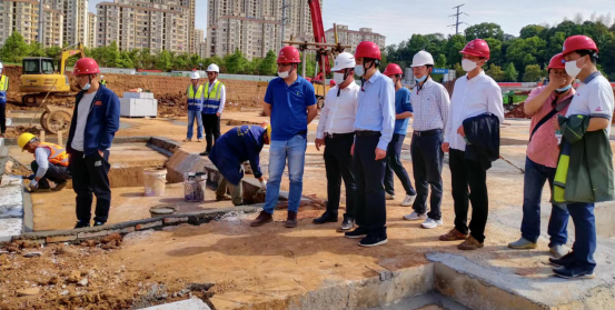 施工现场,严平一行重点对综合体育馆建设项目前期主要问题整改情况进行督查,听取了关于钢柱与直螺纹套筒连接专家论证会、人防区基础专题调度会和钢结构部件送检情况的汇报,与设计单位、监理单位、施工单位和项目负责人就项目建设相关问题进行了调度。