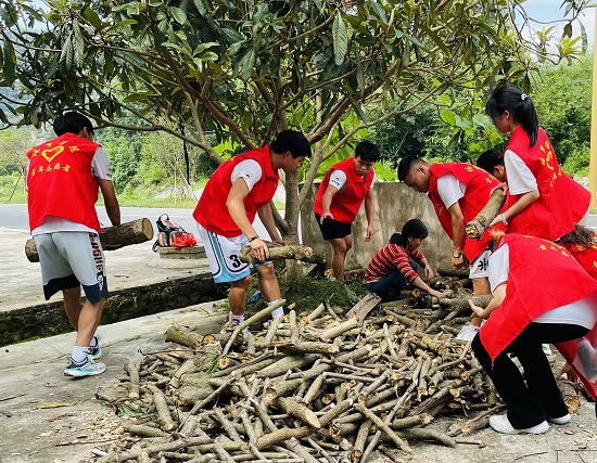 在金盘村,队员们对烈士丁时贵的家属丁时生老人进行慰问和访谈,主动帮助老人家里进行卫生打扫,并开展了物品整理等志愿服务活动。