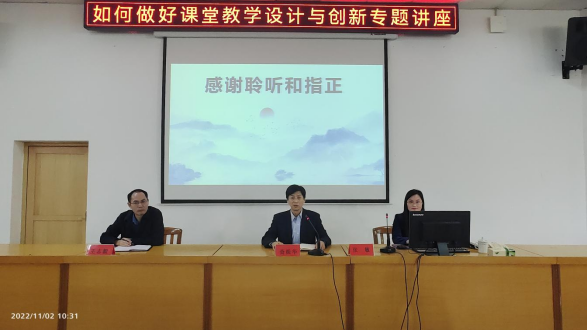 查振华对本次讲座给予充分的肯定。他指出,教学不仅仅是简简单单的知识讲授,而是要讲究教学方法,想要引起学生的共鸣,掌控课堂气氛很重要,教学最终目的是要把复杂的问题讲简单,这就要充分体现课堂教学的设计性,通过教学内容的凝练、教学环节及活动的设计、教学方法运用、教学反思与评价促进,打破以教师的“教”为主的传统课堂,转变为以学生的“学”为主的课堂。查振华要求,各位老师要树立终身学习的理念,拥有一颗上进心,不断创新教学理念,改进教学方法,为学校教育高质量发展贡献力量,真正成为学生成长成才的引路人。