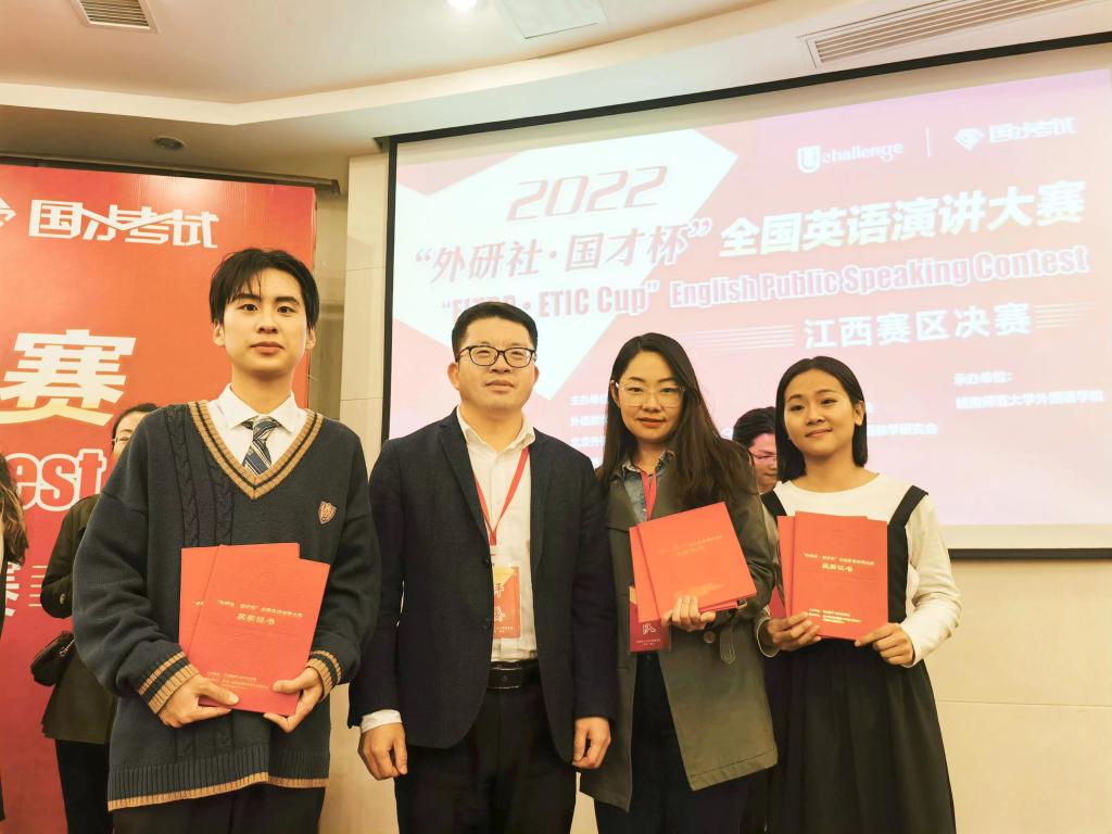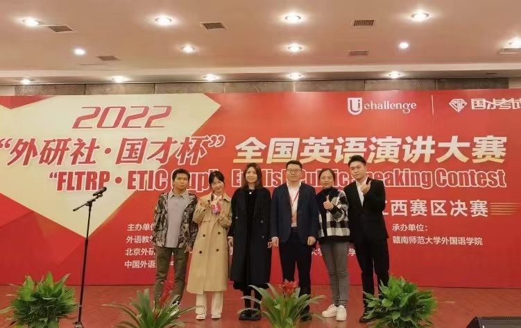 近日,在本届“外研社•国才杯”英语系列大赛中,我校学子们再次斩获佳绩,共获四项一等奖、两项二等奖和一项三等奖。比赛采取线上、线下相结合的方式举行,演讲大赛江西赛区决赛在赣南师范大学举行,阅读大赛和写作大赛在线上举行。在演讲大赛中,外国语学院叶良仟同学获得一等奖,法学院张子骏同学获得二等奖,外国语学院赵志文同学获得三等奖;在阅读大赛中,外国语学院董雨蒙、孙玲云同学分别获得一等奖;在写作大赛中,外国语学院孙玲云同学获得一等奖、姚芷玉同学获得二等奖。