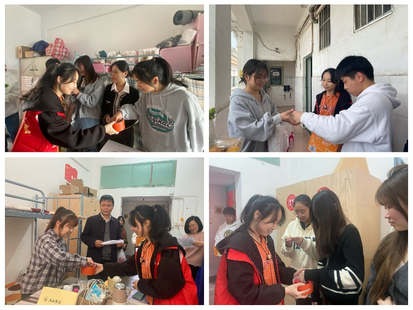 情系女生节,暖心送祝福。3月7日中午,护理学院负责人和全体辅导员走进宿舍,为女同学们送去殷切关怀与节日祝福。“参与抽奖可以换取礼品哦”,学生干部们面带微笑,拿着丰富多样的礼品走进了宿舍。