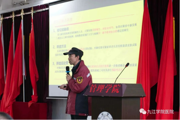 为进一步加强学校结核病健康教育工作,科学、准确地普及结核病防治知识,提高师生对结核病的认知水平和防病意识,改善行为习惯,增强群体防控能力,3月22日下午,校医院邀请九江市濂溪区疾病与预防控制中心主任冷小梁一行到我校管理学院开展校园防治结核病专题讲座。