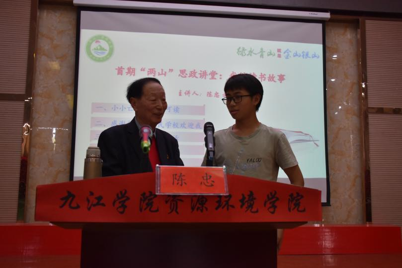 在首期“两山”思政讲堂中,陈忠教授结合自己的人生经历,从“小小亡国奴无书可读、感谢新中国人民学校欢迎我、开启崭新的大学生活、读书读人读生活、有阅读才有未来”五个方面讲述分享了自己的读书故事,重点阐述了读书的重要性,如何过好大学生活,怎样学好专业知识等内容。讲座持续两个多小时,现场气氛热烈,互动频繁。