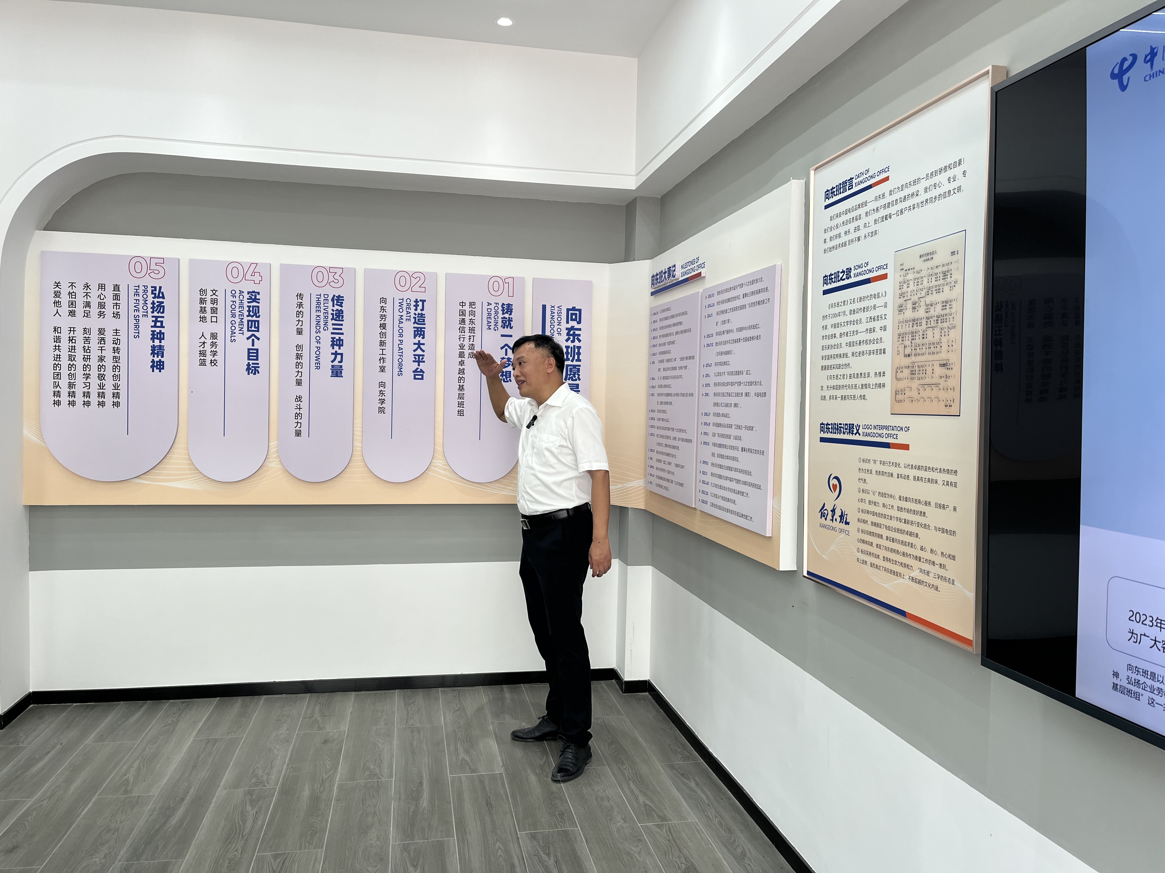 中国电信九江分公司浔阳分局的“向东班”工作室中,全国劳动模范向东同志为同学们阐释从平凡到优秀再到卓越的信念。“十余年来,我们保持着一颗红心向东的赤诚,坚守在平凡的岗位,发挥基层党组织的战斗堡垒作用,努力做到为民所想,为民所用。”