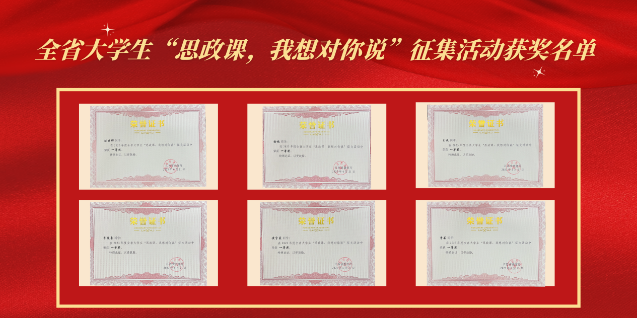 为深入学习贯彻习近平新时代中国特色社会主义思想,全面贯彻落实习近平总书记在学校思想政治理论课教师座谈会上的重要讲话精神,省教育厅在全省开展了《大学生“思政课,我想对你说”征文和“青春之问”征集活动》,我校学子积极参与此次活动并获得了优异成绩。