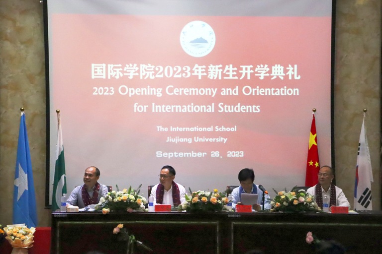 9月26日晚,九江学院2023年来华留学生开学典礼在香远楼三楼报告厅举行。副校长王万山出席开学典礼并致辞,勉励留学生们尽快融入九江学院大家庭。医学院、国际学院负责人、师生代表及2021级、2022级350余名新生参加活动。