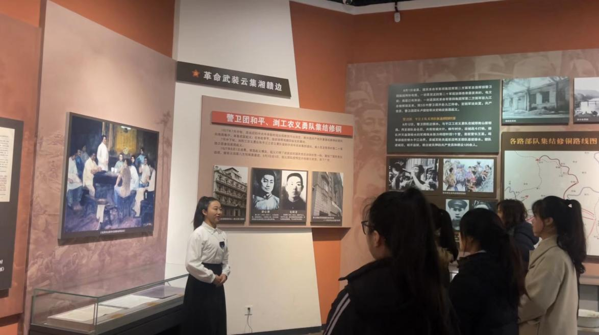 在纪念馆二楼展厅,听着详尽细致的讲解,在现场一件件珍贵的文物、一张张图片和一份份资料中,研学团对秋收起义的时代背景、重大意义、历史作用有了深入了解,在追忆伟人的同时,大家更加坚定自己的青春梦想。