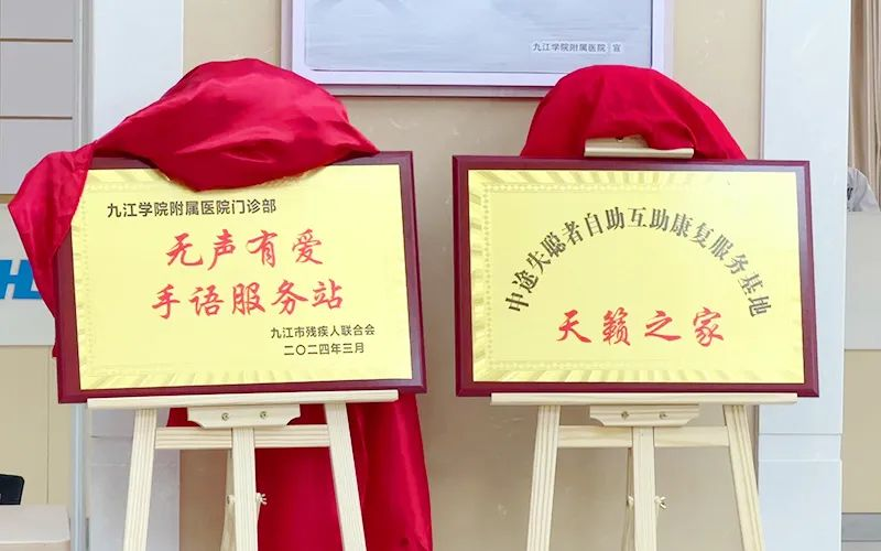 2024年3月3日,市残联“天籁之家”、附属医院“无声有爱”手语服务站揭牌,为前来就医的听障人士提供手语陪诊服务、专业咨询与帮助,为已植入人工耳蜗的患者持续提供康复服务与指导。附属医院、市聋人协会、市虹康残疾儿童康复教育学校共同成立全市首个残疾人康复服务医教联盟——九江市听障康复服务医教联盟,致力于为听力残疾人提供全生命周期自助互助康复服务。
