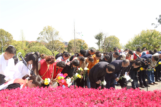 为缅怀纪念遗体器官捐献者,弘扬生命至上、无私奉献的大爱精神,九江市红十字会3月29日上午在贺嘉山陵园组织2024年“生命·礼赞”遗体器官捐献者清明追思活动。市政府副市长、市红十字会会长马海威、副校长雷志强、基础医学院负责人和部分师生代表等参加本次追思活动。
