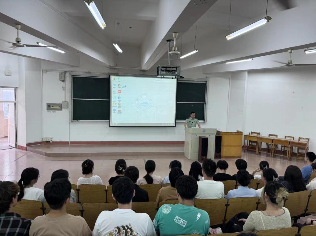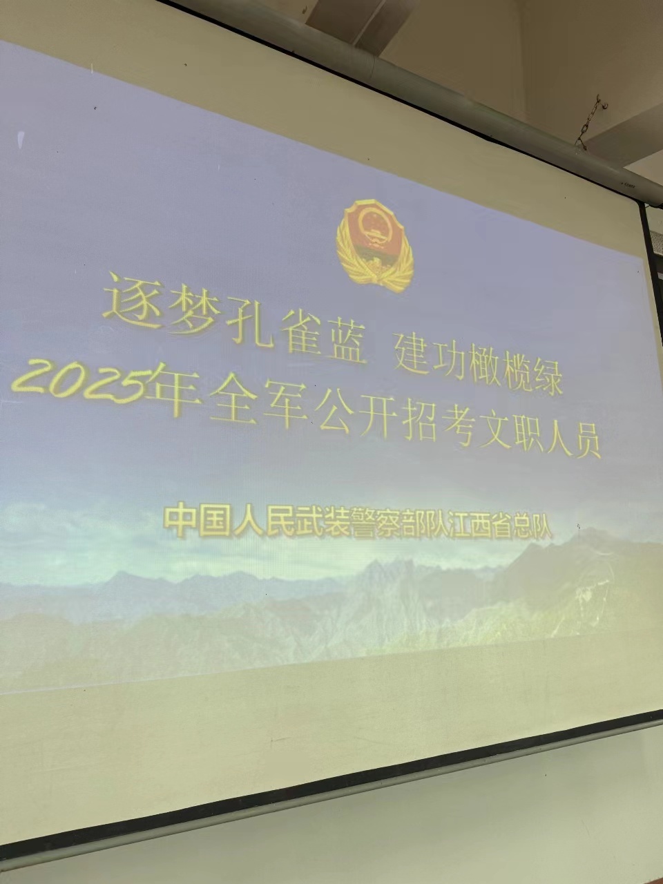 5月23日下午,在竞知楼阶梯教室,一场特殊的招聘宣传活动在我校展开。武警九江支队政工干部为我校学生带来了一场部队文职干部招聘宣讲,向在校学生详细介绍了部队文职人员的职业发展前景和招考流程,引起了同学们广泛关注。武警九江支队政工科负责人、我校学生工作处相关负责同志以及来自各二级学院的200余名学生参加宣讲会。