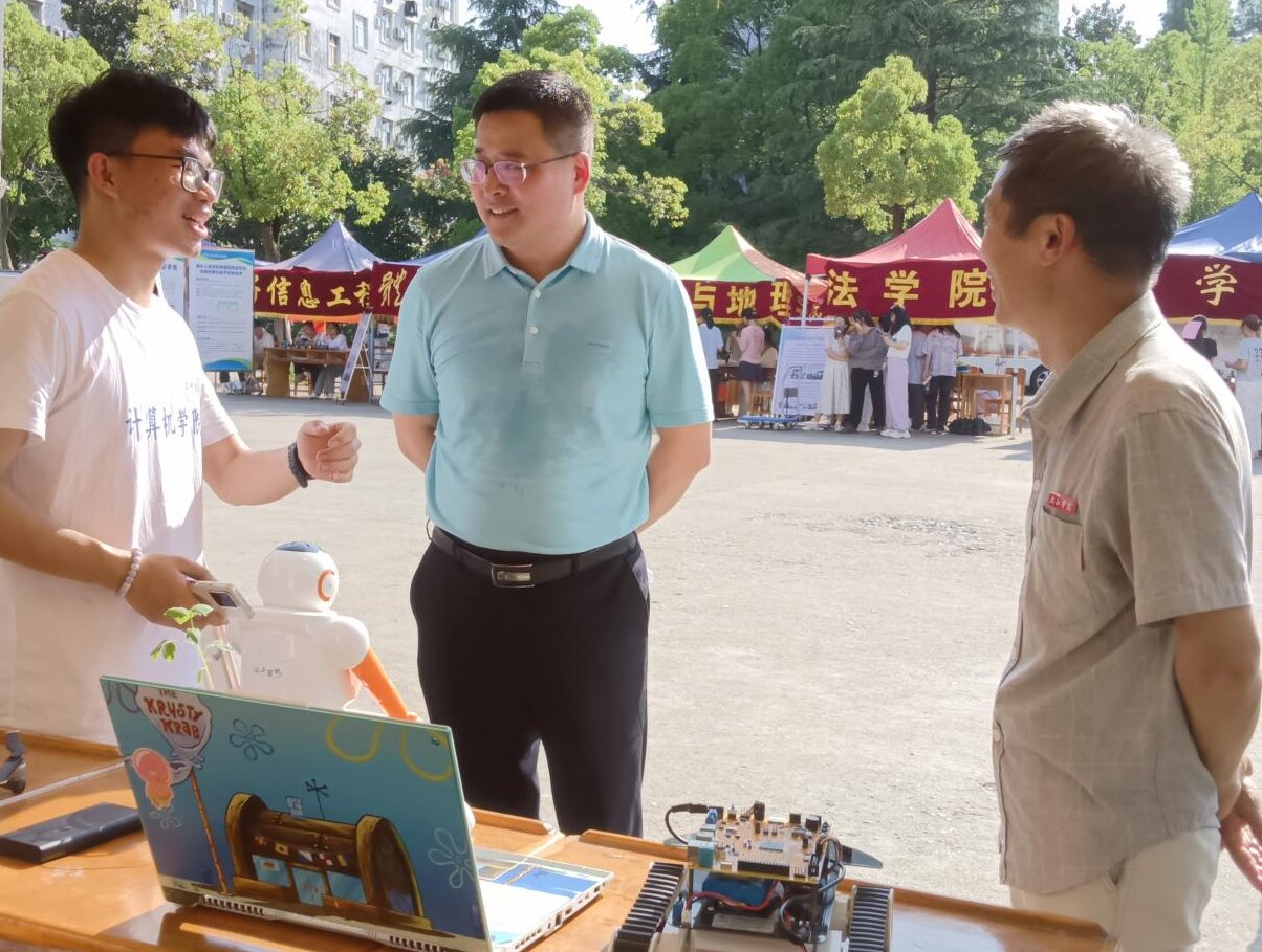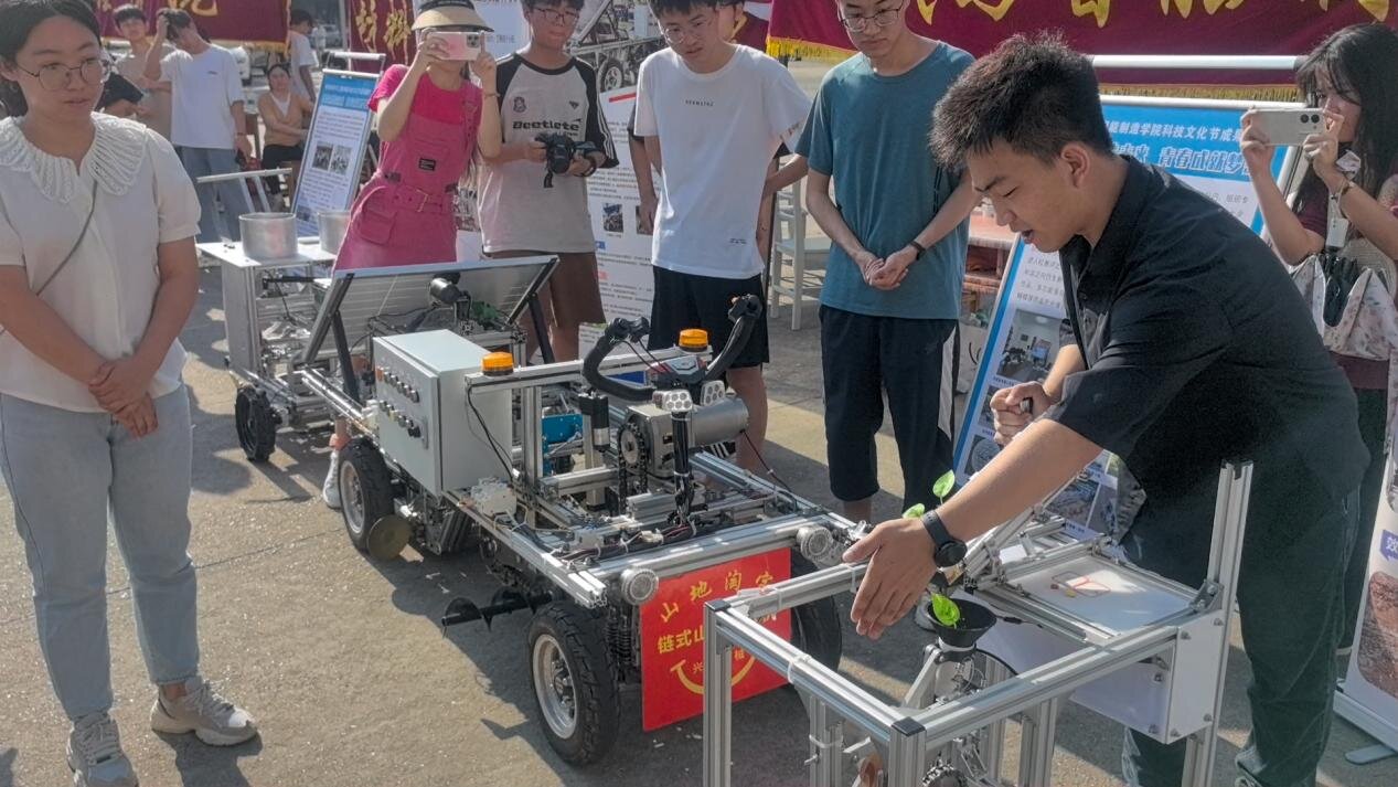 活动现场,机械与智能制造学院的小型半自动辣椒苗种植机、链式山药收获机、多功能豆类播种机等科技发明项目利用科学技术助力农业生产;管理学院的非遗布鞋项目利用新媒体技术和电商平台,帮助建立地方产业带动乡村振兴;建筑工程与规划学院充分发挥专业融合能力,围绕学校自身文化定制打造建筑类九院文创产品并成功上市售卖;教育学院通过人工智能技术,开拓丰富课堂教学手段;电子学院结合学院专业学科竞赛提升学生创新实践能力,荣获多项科技竞赛国家级、省部级奖项;文学院发挥自身专业教师特长,指导学生参加全国科普大赛荣获九江市一、二等奖及省优秀奖。