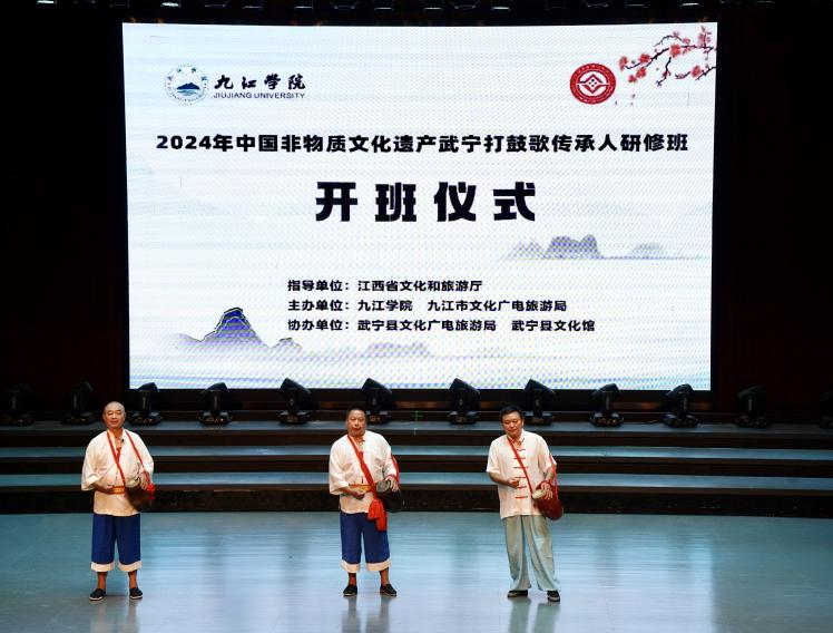 9月2日上午,2024年度中国非物质文化遗产武宁打鼓歌传承人研修班在我校艺术学院音乐厅举行开班仪式。研修班由艺术学院主办,来自武宁县的30多名学员参与此次研修活动。校党委委员、副校长查振华代表学校致开班辞。中国戏剧文学学会会长羊驰,江西省文旅厅非遗处处长邓明华,九江市文化广电旅游局副局长杨珺、艺术学院负责人等出席开班仪式。