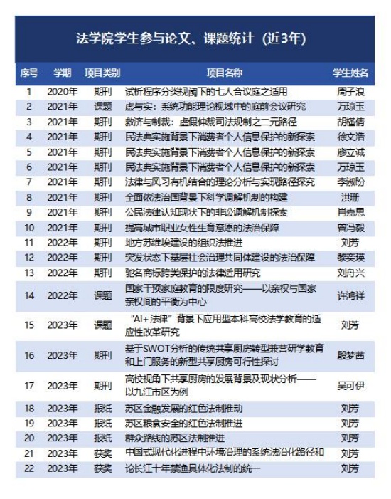 学院从专业人才培养方案修订着手,调整课程内容,加强课程建设,强化教学督导,落实青年教师导师制,拓宽实践教学平台,人才培养质量显著提高。2024届毕业生共265名,其中77名学生通过法律职业资格考试,占报考人数的40.5%,通过人数和通过比例均创历史新高;学生获大学生创新创业训练计划项目国家级立项1项、省级立项2项;在大学生挑战杯、大学生课外学术科技作品竞赛挑战杯中获省级三等奖1项、校级二等奖2项和校级三等奖2项;1名学生获全国大学生外语能力比赛铜奖。