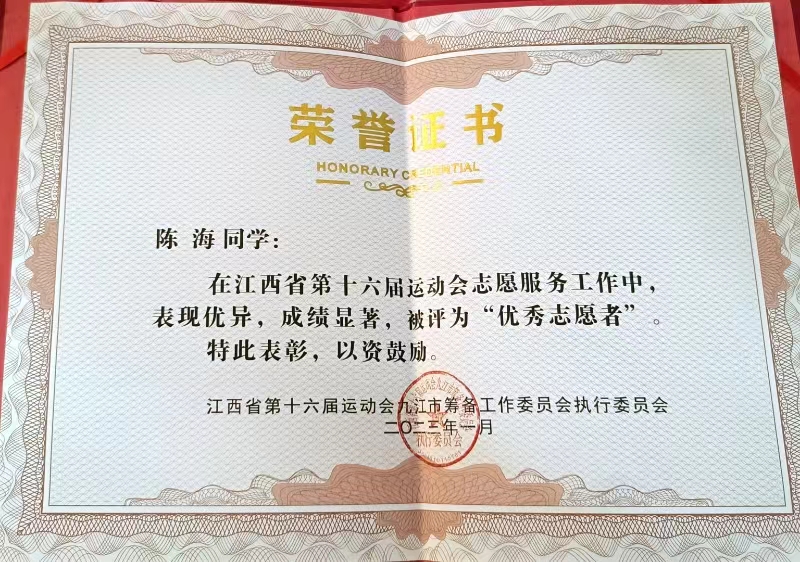 学院每年组织师生参与九江市中考体育考试裁判和志愿者工作。在2022年省运会期间,组织110名同学担任开幕式演员以及赛事志愿者,圆满完成任务,4人荣获“优秀志愿者”称号,为体育事业高质量发展发挥了应有作用。