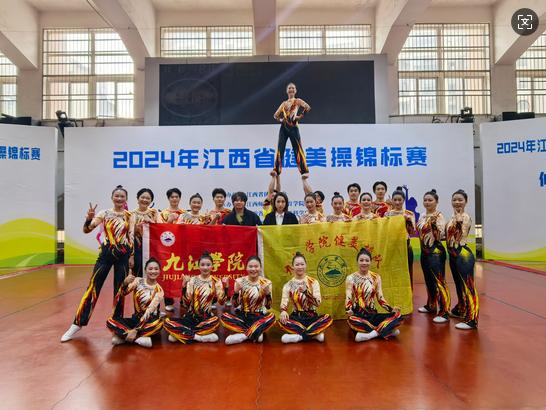 九江学院代表队在多个项目中表现出色,夺得了竞技健美操本科乙组自选有氧踏板冠军、2020《学生健身操舞运动技术等级标准》9级大集体冠军、2012全国全民健身操等级推广规定动作有氧舞蹈6级亚军、大众健美操本科乙组初级规定套路季军等优异成绩。