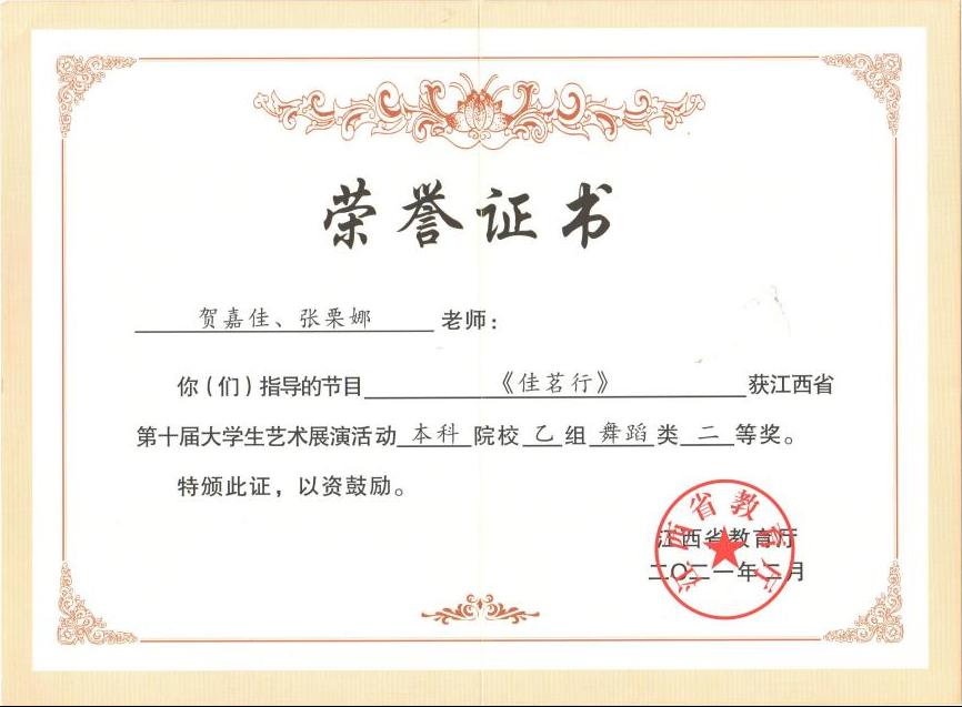 《佳茗行》获江西省第十届大学生艺术展演活动二等奖