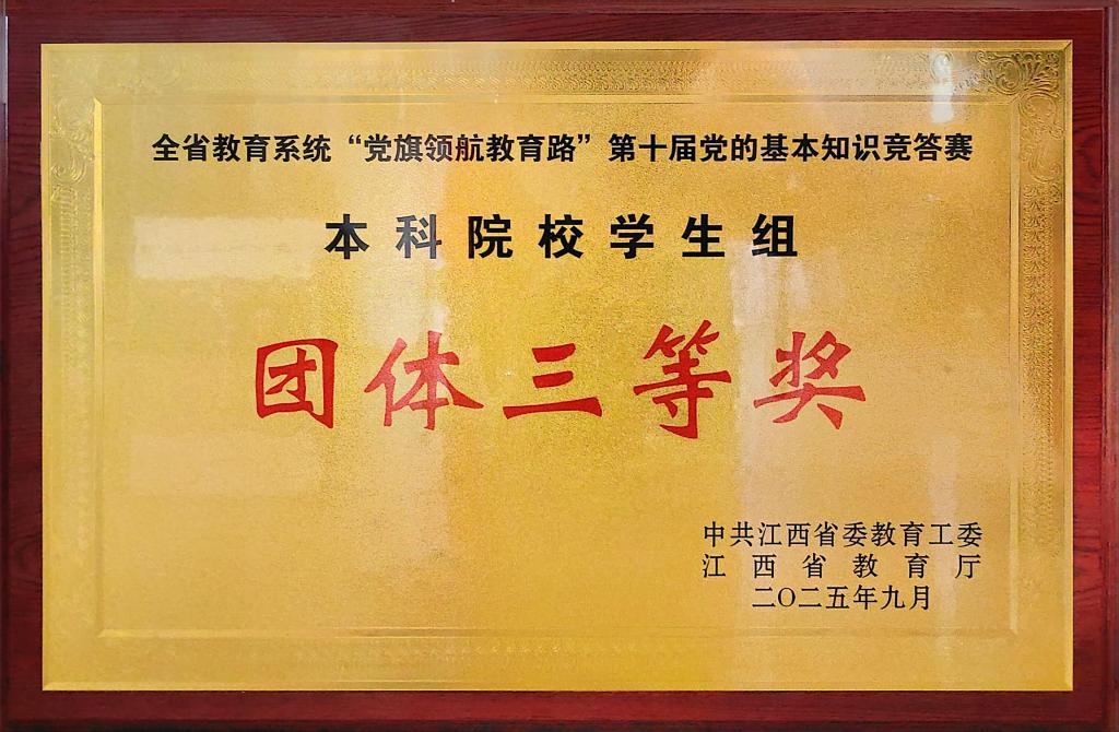 9月28日,由江西省委教育工委、省教育厅主办的全省教育系统“党旗领航教育路”第十届党的基本知识竞答赛决赛在江西中医药大学落幕。在全省教育系统188支队伍的激励角逐中,九江学院参赛学子凭借扎实的理论功底与沉稳的临场发挥,荣获本科院校学生组团体三等奖。