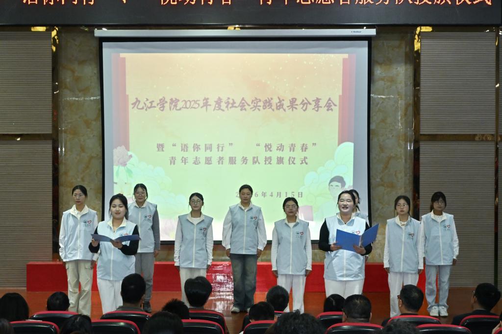 4月15日下午,九江学院2025年度社会实践成果分享会暨“语你同行”“悦动青春”青年志愿者服务队授旗仪式圆满举行。校党委委员、副校长吴维勇出席并讲话,校团委主要负责同志,党委宣传部、教务处相关负责同志,各二级学院党委副书记、团委书记、社会实践指导教师代表、实践团队代表、志愿者代表等300余人参会。