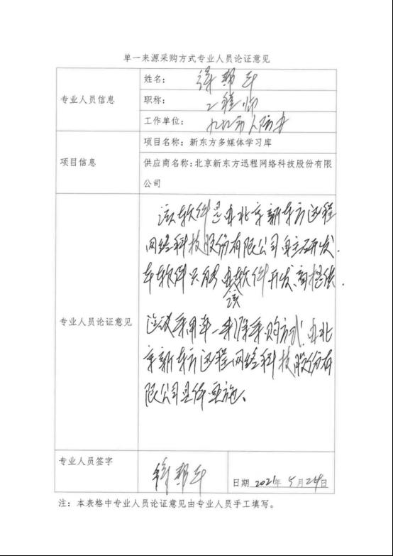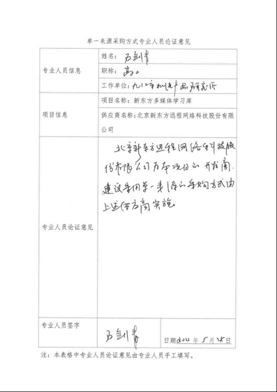 采用单一来源采购方式的原因及说明:该软件是由北京新东方迅程网络科技股份有限公司自主研发,本软件只能由北京新东方迅程网络科技股份有限公司提供,建议采用单一来源方式由北京新东方迅程网络科技股份有限公司具体实施。